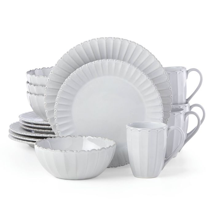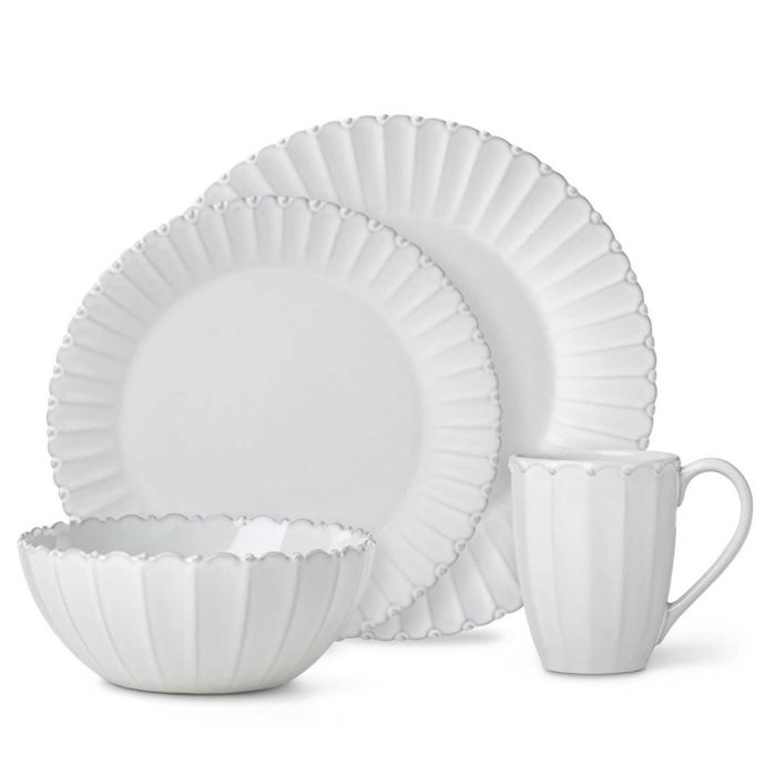 You can find cake stand, bowls, appetizer plates, mugs, dinner plates, and dinnerware sets all made in portugal. Dinnerware can be purchased by the piece or by the set. Shop for white beaded dinnerware at bed bath & beyond. Elama white lace 16 piece round scallop stoneware dinnerware set in white. White beaded dinnerware sets also make a great gift for new homeowners, close friends and family.