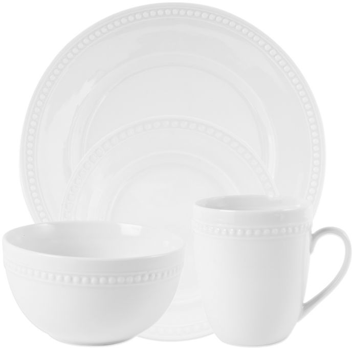 Claire beaded 12 piece dinnerware set, service for 4. Gardens 16 piece porcelain sophia beaded dinnerware set is a traditional round rim dinnerware set that is surrounded by a beaded accent on the edge of the plates and on the outside of the bowls and mugs. White beaded dinnerware sets also make a great gift for new homeowners, close friends and family. Sold as set of 4 or individually for in store pick up. Rated 4.9 out of 5 stars based on 41 reviews. Serve up refined dinners or. Most of the stoneware and earthenware pieces are dishwasher safe. You can find cake stand, bowls, appetizer plates, mugs, dinner plates, and dinnerware sets all made in portugal. 4.3 out of 5 stars with 236 ratings. Free shipping on orders over $25.00. 5 out of 5 stars. Dinnerware can be purchased by the piece or by the set. A chic, contemporary upgrade to classic white china, this gorgeous stoneware set features a ridged outer rim lined with a delicate polka dot display for a dash of charm.